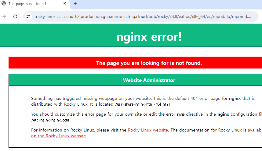 - Status code: 404 for https://rocky-linux-asia-northeast3.production.gcp.mirrors.ctrliq.cloud/pub/rocky//8.8/extras/x86_64/os/repodata/repomd.xml (IP: 35.186.196.188)